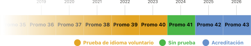 • En la Promoción 41 se eliminó dicha prueba de idioma, no exigiendo tampoco ninguna titulación ni acreditación.
