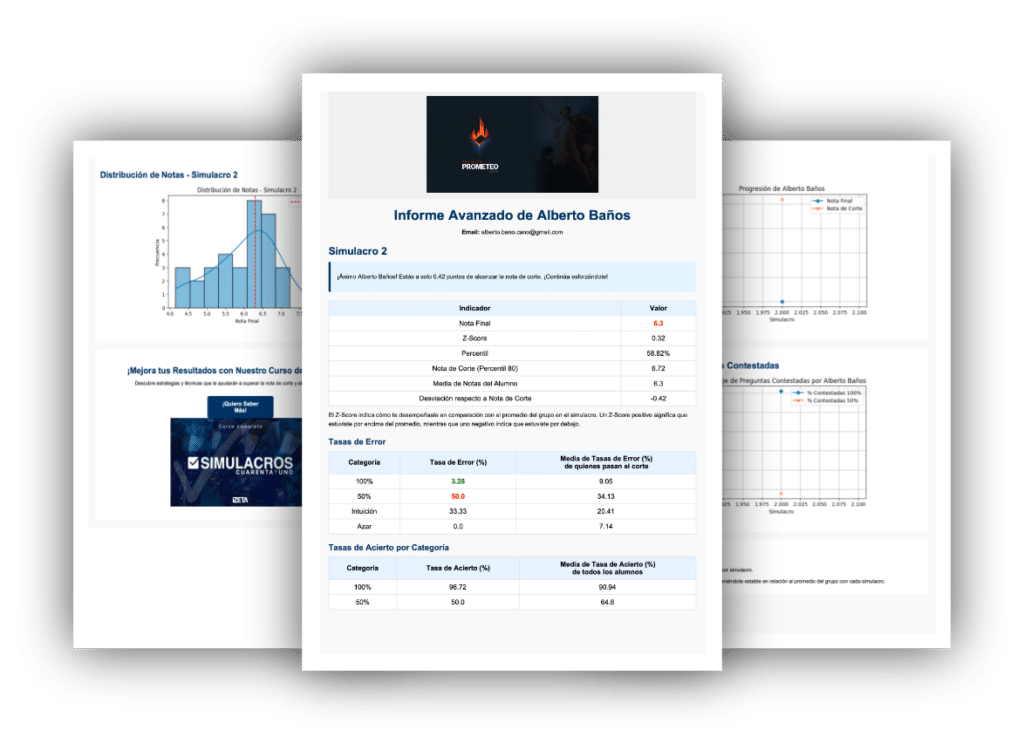 Una vez rellenes el formulario que te indicamos más arriba, te llegará a partir del domingo por la noche el informe del mismo y un PDF con la retroalimentación del simulacro.