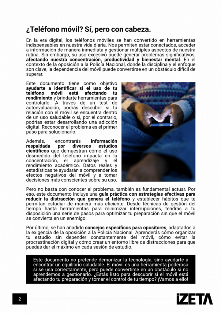 Si estás preparando la oposición a Policía Nacional, cada minuto cuenta, y un uso inadecuado del smartphone puede ser el enemigo silencioso que te aleja de tu objetivo. Por eso, en iZETA hemos preparado una guía completa para ayudarte a controlar tu relación con el móvil y maximizar tu rendimiento.